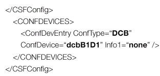 它由三個要素組成――CSFConfig、CONFDEVICES和ConfDevEntry。前兩個要素只用于為解析和數(shù)據收集過程中的每個ConfDevEntry提供環(huán)境。CONFDEVICES要素用于確定值所駐留的STL容器,容器(CONFDEVICELIST)的每個節(jié)點都包含一個對象,對象的成員變量名稱類似于XML文件中的屬性名稱――如ConfType、ConfDevice、Info1等等。成員變量的值將為屬性的值――DCB、dcbB1D1、及空值。