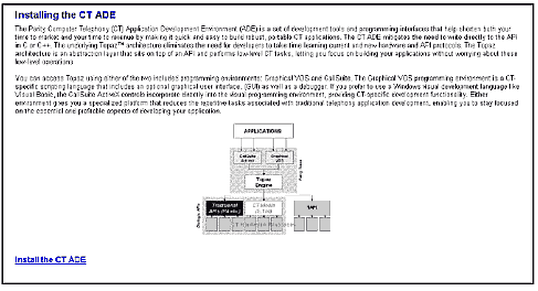 Dialogic的 CT ADE 的基本目的是幫助開(kāi)發(fā)者縮短開(kāi)發(fā)流程,它是一種易用、功能齊全、工業(yè)級(jí)的軟件開(kāi)發(fā)環(huán)境。