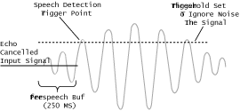 - 預(yù)緩沖(Pre-Speech Buffer) - 進(jìn)入的語(yǔ)音數(shù)據(jù)被存在一個(gè)250毫秒的緩沖區(qū)里。 當(dāng)檢測(cè)到語(yǔ)音能量,這一部分儲(chǔ)存在緩沖區(qū)里的語(yǔ)音就會(huì)被轉(zhuǎn)發(fā)到語(yǔ)音識(shí)別資源來(lái)被處理。這種預(yù)緩沖的里包含的關(guān)鍵信息在高識(shí)別準(zhǔn)確率要求的時(shí)候是十分關(guān)鍵的。