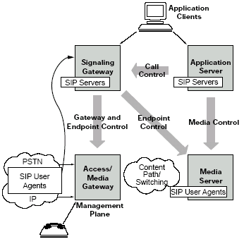 許多語(yǔ)音服務(wù)都是由媒體服務(wù)器提供的。例如,一個(gè)客戶(hù)給某個(gè)電子商務(wù)網(wǎng)站打電話會(huì)被接到一個(gè)自動(dòng)語(yǔ)音應(yīng)答(IVR)上或者自動(dòng)總機(jī)上。這些應(yīng)用使用了語(yǔ)音,語(yǔ)音識(shí)別和音頻等功能,都是運(yùn)行在媒體服務(wù)器上的。在下一代網(wǎng)絡(luò)的實(shí)現(xiàn)中,媒體服務(wù)器就象是另一個(gè)電話(或者說(shuō),一個(gè)SIP的終端)。因此,他們可以享受和用戶(hù)一樣的SIP的優(yōu)點(diǎn)。