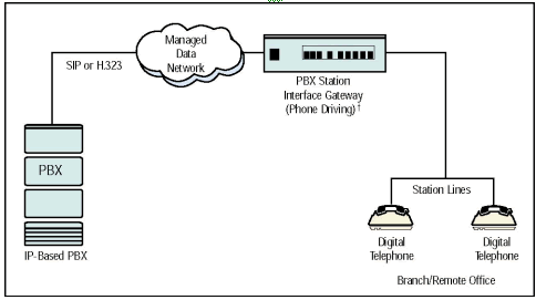 PBX-IP 媒體網(wǎng)關可以把IP電話連接到傳統(tǒng)PBX上, 給PBX集成了網(wǎng)絡應用, 擴展了PBX, 集成了企業(yè)局域網(wǎng)或廣域網(wǎng)語音,