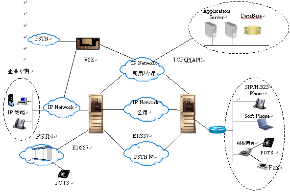 它可提供對H.323,SIP電話的支持,提供對IP終端呼叫轉(zhuǎn)移,主叫顯示,三方通話等功能的補充業(yè)務(wù)的支持, 還有路由選擇,呼叫控制,呼叫記錄等各項功能,滿足你多業(yè)務(wù)的需求。ESE/VSE還將進(jìn)一步完善虛擬專網(wǎng)VPN的功能,為企業(yè)VoIP網(wǎng)絡(luò)服務(wù)。