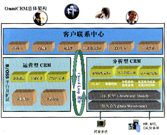 經(jīng)營分析型CRM: OmniVision是OmniCRM方案中經(jīng)營分析型CRM的核心,它采用數(shù)據(jù)倉庫、ETL、OLAP分析、靈活報表展現(xiàn)及數(shù)據(jù)挖掘等技術(shù),結(jié)合電信業(yè)務的深厚經(jīng)驗,進行用戶分析、業(yè)務分析、收益分析、大客戶分析、營銷分析、競爭分析、服務質(zhì)量分析等主題分析。 客戶聯(lián)系中心: OmniContactCenter是OmniCRM方案中的客戶聯(lián)系中心,包括多媒體呼叫中心、網(wǎng)上用戶自服務系統(tǒng)(網(wǎng)上營業(yè)廳)、直郵傳真處理中心等。所有的市場活動都是由客戶聯(lián)系中心傳遞給客戶的,所有的客戶反饋和請求都是由這里反饋給分析系統(tǒng)的。 大客戶管理:OmniVIP OmniVIP是亞信公司結(jié)合深厚的行業(yè)知識,專門針對集團大客戶、商業(yè)大客戶、潛在大客戶等各類電信大客戶,從分析和運營兩個方面為各電信公司提供的完整而領先的大客戶管理方案,它能夠為運營商提供現(xiàn)有及潛在大客戶的全方位視圖,包括客戶行為、業(yè)務情況、商業(yè)獲利率、競爭情況等,挖掘潛在商機,使利潤最大化;能夠使運營商有效地降低成本;能夠使運營商為大客戶提供真正的個性化服務;能夠使運營商預測、吸引并發(fā)展?jié)撛诘拇罂蛻簦荒軌蚴惯\營商有效地管理大客戶服務人員,提高客戶的滿意度和忠誠度;能夠通過OmniContactCenter、代理商、營業(yè)廳、SMS、Email等全面的渠道管理,幫助電信運營商對大客戶進行“全員、全程、全方位”服務,從而全方位地為大客戶提供最完善優(yōu)質(zhì)的服務。 市場管理:OmniMarketing OmniMarketing根據(jù)分析系統(tǒng)得出的結(jié)論,產(chǎn)生相應的市場活動發(fā)送給運營型CRM部分執(zhí)行,同時將執(zhí)行結(jié)果和反饋收集回來進行比較、評價和進一步的分析,以期設計出更合理的資費和更貼切的業(yè)務給用戶。 銷售管理:OmniSFA 隨著競爭的加劇,運營商的銷售也將從傳統(tǒng)的柜臺坐等的經(jīng)營模式轉(zhuǎn)變成有針對性的主動出擊發(fā)展客戶的模式。銷售管理系統(tǒng)就是提供了針對銷售人員的銷售輔助工具,其中包括任務分配與下達、日程安排、客戶資料管理、銷售機會管理、銷售漏斗、報價管理、訂單合同管理、銷售業(yè)績考評和資金評定等模塊。 通過OmniSFA,銷售工作將按照科學化正規(guī)化流程化的方式來進行。 運作型和分析型CRM的互動循環(huán)