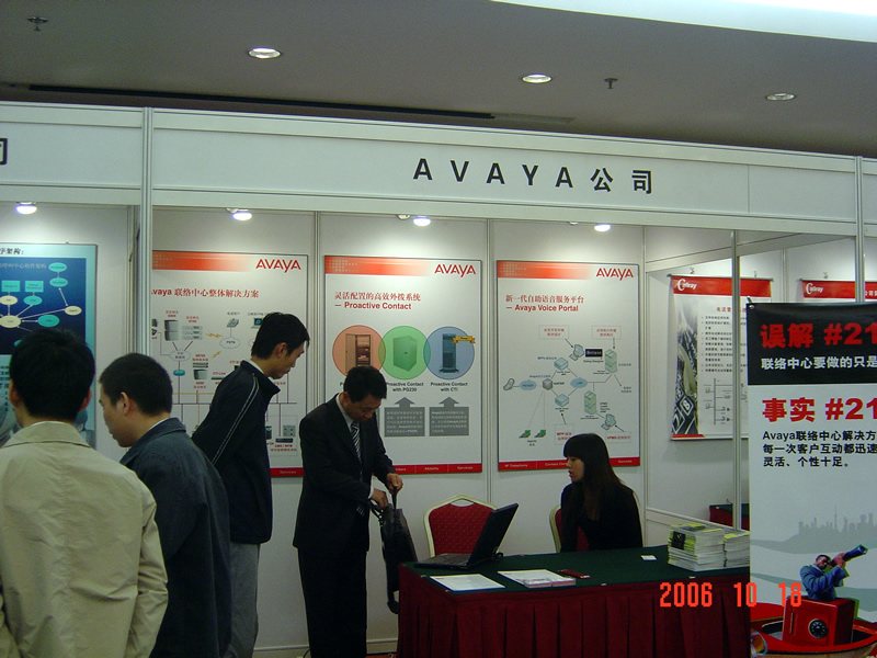 。。2006年10月18日,2006保險業(yè)呼叫中心應(yīng)用暨電話營銷高峰研討會在北京天鴻科園大酒店隆重召開,以下是展廳參觀的相關(guān)圖片報道: