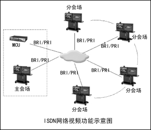 ISDN網(wǎng)絡連接:借助思科IP視頻會議系統(tǒng),目前廣泛使用的ISDN通信網(wǎng)可以與視頻終端ISDN PRI或BRI接口相連,通過撥號與任何一個會場進行隨時隨地的連接。另外,采用ISDN線路還可以起到網(wǎng)絡備份和延伸的作用。ISDN線路的建設非常方便,各分會場可以從電信部門申請ISDN線路,并在1至2周內完成線路到位。