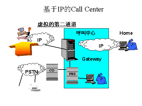 目前擁有呼叫中心基礎(chǔ)設(shè)施(這些設(shè)施包括自動(dòng)呼叫分配器ACD、IVR系統(tǒng)或呼叫管理系統(tǒng))的企業(yè)安裝一個(gè)互聯(lián)網(wǎng)電話(huà)網(wǎng)關(guān)作為通向ACD或呼叫中心轉(zhuǎn)換的前端。網(wǎng)關(guān)作為公用電話(huà)交換網(wǎng)與互聯(lián)網(wǎng)絡(luò)之間的橋梁,使呼叫中心能夠向客戶(hù)和潛在客戶(hù)傳送同步語(yǔ)音和數(shù)據(jù)服務(wù),所有這一切都通過(guò)一條電話(huà)線(xiàn)。按數(shù)字顯示,網(wǎng)關(guān)可通過(guò)模擬線(xiàn)路與現(xiàn)有設(shè)備連接,或通過(guò)數(shù)字線(xiàn)路與多媒體PC連接。這使得呼叫中心能夠利用其現(xiàn)有設(shè)備,工作人員培訓(xùn)和呼叫管理活動(dòng)中的原有投資。