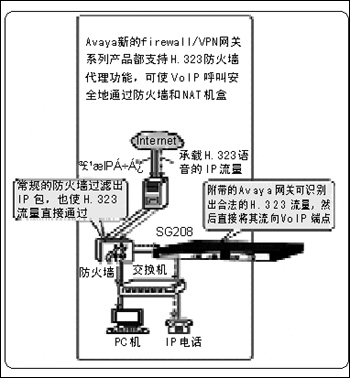 Avaya公司計(jì)劃在近期推出幾款網(wǎng)關(guān)設(shè)備,以支持IP電話呼叫能安全地通過防火墻。其中,包括SG5/5X和MG200系列的firewall/VPN設(shè)備。這些新產(chǎn)品的一個(gè)重要特性就是對(duì)H.323 VoIP協(xié)議的支持,這樣可使VoIP安全、方便地部署在遠(yuǎn)程節(jié)點(diǎn)上,而且新的設(shè)備也可與現(xiàn)有的firewall/VPN設(shè)備協(xié)同工作,或用來建立某個(gè)安全基礎(chǔ)設(shè)施。同時(shí),H.323代理功能可使Avaya的IP電信呼叫置于Internet上而不受某個(gè)公共防火墻的干擾。