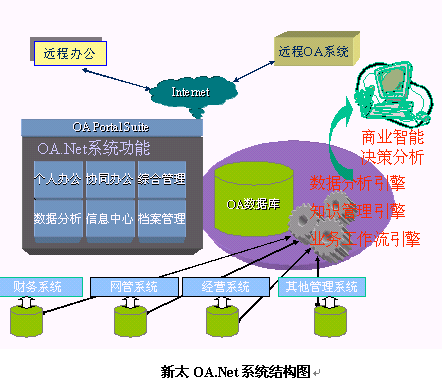 新太OA.Net系統(tǒng)基于最新的B/S三層體系結(jié)構(gòu)開發(fā),采用關(guān)系型數(shù)據(jù)庫(SQL Server,Oracle等)結(jié)合群件系統(tǒng)(Exchange、Domino等)的方式,在保證系統(tǒng)高穩(wěn)定性的基礎(chǔ)上充分發(fā)揮了系統(tǒng)的靈活性。客戶端基于瀏覽器,無需安裝軟件,版本自動更新到客戶端,大大降低了系統(tǒng)維護(hù)的難度。