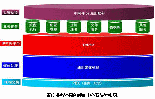 面向業(yè)務(wù)流程的呼叫中心基礎(chǔ)平臺(tái)采用水平式系統(tǒng)架構(gòu),此種架構(gòu)方式屏蔽了底層功能(如交換、媒體處理)的技術(shù)實(shí)現(xiàn),通過業(yè)務(wù)抽象為業(yè)務(wù)流程提供功能部件的組合,相對(duì)于傳統(tǒng)的垂直分散的結(jié)構(gòu)而言,用戶只關(guān)注業(yè)務(wù)流程,無需關(guān)心底層的技術(shù)實(shí)現(xiàn)。