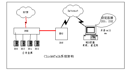 舉個(gè)例子,在傳統(tǒng)的網(wǎng)上交流手段下,對(duì)于一個(gè)在線商戶(hù)來(lái)說(shuō),其客戶(hù)如果需要與而且也容易造成客戶(hù)流失。現(xiàn)在采用Click&Talk系統(tǒng)后,一個(gè)在線的商戶(hù)只要將一個(gè)Click & Talk的按鈕嵌在在線商店里。世界各地的用戶(hù)只需要通過(guò)PC,點(diǎn)擊在線商戶(hù)的這個(gè)按鈕,就能與商戶(hù)電話聯(lián)系,或請(qǐng)求在方便的時(shí)間給予回?fù)。通過(guò)這種通信模式,世界各地的客戶(hù)都能和您保持密切互動(dòng)的聯(lián)系,而不用擔(dān)心長(zhǎng)途電話的費(fèi)用。還可以實(shí)現(xiàn)公司出差人員及分支機(jī)借助Click&Talk平臺(tái)和公司總部的通話的應(yīng)用,大幅節(jié)省話費(fèi)成本。