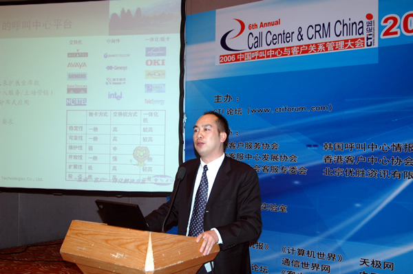 2006年4月3日至5日,2006中國(guó)呼叫中心與客戶關(guān)系管理大會(huì)在北京國(guó)際會(huì)議中心隆重召開,以下是星際網(wǎng)絡(luò)的執(zhí)行副總裁柳國(guó)東專題演講實(shí)錄: 第一個(gè)特點(diǎn)就是我們提出來了一個(gè)全程一體化的服務(wù)解決方案。整個(gè)解決方案有三個(gè)層面,第一個(gè)層面就是我們要和企業(yè)一起建設(shè)一個(gè)適用的呼叫平臺(tái),F(xiàn)在我們企業(yè)在選擇建立呼叫中心的時(shí)候也有一些困惑,比如說我要建設(shè)一個(gè)30個(gè)坐席的呼叫中心,可能很多集成商的方案和報(bào)價(jià)從20萬到100萬都有,現(xiàn)在各個(gè)呼叫中心的平臺(tái)都已經(jīng)很成熟了,但是作為企業(yè)來講,要選擇一個(gè)適合自己的呼叫中心,而不是選擇昂貴的或者是低廉的。我們建立呼叫中心以后可以進(jìn)行高效率的電話接聽和服務(wù)人員的管理平臺(tái)。但是并不能解決我們服務(wù)的流程管理、流程監(jiān)控。咨詢的結(jié)果我們并沒有因?yàn)榻⒑艚兄行木桶褑栴}解決了。所以我們星際網(wǎng)絡(luò)提出了服務(wù)應(yīng)用的概念。一般來說現(xiàn)有的企業(yè)大概的服務(wù)方式有兩種,那么星際網(wǎng)絡(luò)根據(jù)這兩種不同的服務(wù)模式,我們也提供了相應(yīng)的服務(wù)應(yīng)用。我們希望通過一個(gè)前臺(tái)高效的服務(wù)中心平臺(tái),和后臺(tái)一個(gè)豐富的系統(tǒng)應(yīng)用,真正幫助企業(yè)解決完成的客戶流程。