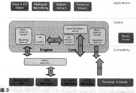 連接層由3個關(guān)鍵部分組成:用戶設(shè)備、媒體網(wǎng)關(guān)和IP傳輸。ENGINE解決方案的媒體網(wǎng)關(guān)可以支持從很小數(shù)量的用戶擴(kuò)展到數(shù)百萬用戶。本地交換機、匯接交換機和用戶交換機可以接入到媒體網(wǎng)關(guān)。多媒體用戶可通過SIP終端和IAD接入。ENGINE支持采用V5、ISUP、SIP和H.248等各種接入節(jié)點的用戶。在ENGINE解決方案中,媒體網(wǎng)關(guān)同時也是接入網(wǎng)關(guān),可以實現(xiàn)C5電話業(yè)務(wù)和基于SIP的寬帶用戶功能。