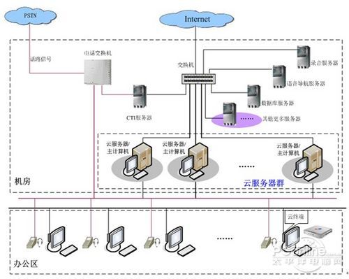清華同方云終端呼叫中心解決方案,基于計算與操作相分離的理念,采用清華同方自主研發(fā)并生產(chǎn)的云終端設(shè)備作為終端用戶硬件操作平臺,云服務器采用滿足需求的高端PC即可。清華同方云終端呼叫中心解決方案網(wǎng)絡(luò)拓撲為星型結(jié)構(gòu),在TCP/IP協(xié)議百兆交換到桌面的以太網(wǎng)環(huán)境下,提供了全方面兼容Windows的軟硬件一體化解決方案。本系統(tǒng)基于清華同方安全自主研發(fā)的VDP協(xié)議為核心的Windows終端虛擬桌面服務技術(shù),終端呈現(xiàn)業(yè)務工作界面,所有的計算、存儲都由云服務器端完成,在保證本地正常工作的同時,避免了使用PC機作為客戶端的資源浪費,在降低了總體擁有成本的基礎(chǔ)上,增強了呼叫中心信息系統(tǒng)的穩(wěn)定性