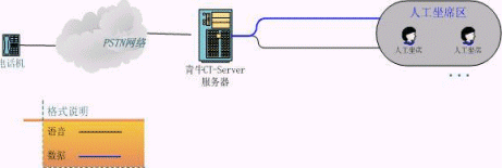 根據(jù)實(shí)際呼入量和人員規(guī)模,客服中心一般只能夠使用模擬電話接入加上語音板卡的方式。利用青牛軟件提供的CT-Server方案就可以滿足這一需求,本方案不僅提供了小容量的PBX功能,而且提供了CTI控制和自動(dòng)語音處理功能;贑T-Server可以方便的開發(fā)出適合自己業(yè)務(wù)的坐席應(yīng)用軟件和IVR流程,開發(fā)人員只需要了解簡(jiǎn)單的呼叫流程和業(yè)務(wù)流程,無需熟悉語音板卡的硬件開發(fā)接口,也不需要關(guān)心系統(tǒng)采用的是NMS的語音板卡還是Dialogic的語音板卡。