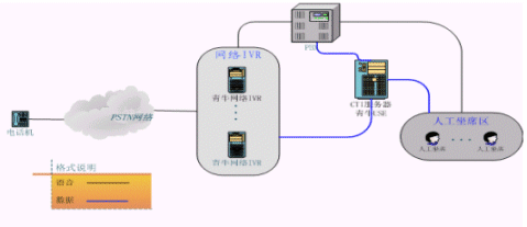 青牛IVR集群方案將原來放在PBX后面的IVR"前移",PBX的LINK只有和坐席相關(guān)的信息,大量的和IVR相關(guān)的呼叫信息被剝離出去,由青牛網(wǎng)絡(luò)IVR直接自行處理。根據(jù)統(tǒng)計(jì),自動(dòng)業(yè)務(wù)的呼叫量在整個(gè)客服中心呼叫量中占大多數(shù),當(dāng)呼叫量越大的時(shí)候,該方案的優(yōu)勢(shì)就越明顯。