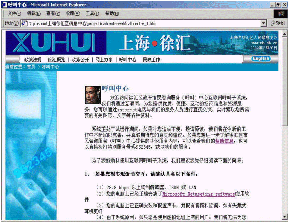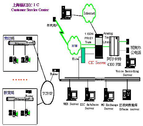 上海市徐匯區(qū)市民咨詢(呼叫)中心的第一期工程包括語(yǔ)音自動(dòng)應(yīng)答IVR、按需傳真Fax on Demand、語(yǔ)音郵件Voice Mail、網(wǎng)頁(yè)互動(dòng)Web Interaction、座席屏幕彈出Agent Screen Pop、報(bào)表以及語(yǔ)音記錄等功能。該中心具有以下特點(diǎn),很好地滿足了徐匯區(qū)政府的要求。