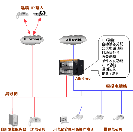 用很少的投資搭建一個(gè)以Altiserv為中心的網(wǎng)絡(luò)電話系統(tǒng)可以基本滿足企業(yè)的辦公, 數(shù)字、語音及多媒體通訊的全方位需求。而且隨著您企業(yè)的不斷發(fā)展壯大,奧迪堅(jiān)隨時(shí)可為您增加任何您所需的功能。