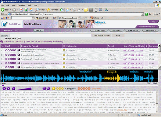 IntelliFind將客戶呼叫轉換成可搜索的數(shù)據(jù)庫形式,根據(jù)業(yè)務分類、短語和關鍵字鑒別呼叫。IntelliFind使用語音文本轉換技術轉換客戶呼叫錄音,幫助用戶理解客戶交互的情況。
