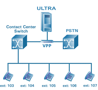 當ULTRA不與CTI連接同時不支持信令方式的情況下,ULTRA可以基于VOX方式來部署,通過RTP語音流的偵測。VOX VoIP方案同樣需要靜態(tài)IP地址環(huán)境。