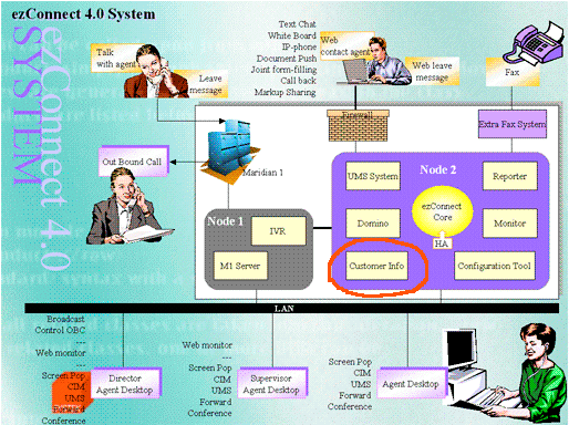 作為一種成功的企業(yè)應用案例,這種方案已經成功的應用在我們的企業(yè)級多媒體呼叫中心 ezConnect產品中,該產品能同時處理傳統(tǒng)呼叫中心的電話請求和以互聯(lián)網為中心的Web 請求,同時配備多種實時交流手段,軟電話功能和基于web 的文本交談,圖片共享,白板,文檔推送,IP電話,UMS, SMS 和WAP 等為客戶提供很方便且實用的功能, 并且提供基于特定技能路由的分配器,同時處理電話和Web請求。而且同時支持多種語言并提供統(tǒng)一的配置工具。當該請求到達座席時,在座席的桌面上彈出客戶的基本信息和交易信息,座席可以根據這些信息給客戶提供更加個性化的服務。本文就針對該產品的實際開發(fā)和實現, 以及工作中的一些感想來與大家共同探討客戶信息管理的應用和前景。