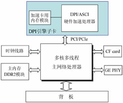DPI檢測實際上也是一個計算密集型應用,它要求掃描整個數據包,計算開銷非常大。傳統(tǒng)網絡設備在實現此功能時大多采用軟件方案,在通用的CPU上進行處理,在獨占一個CPU核的情況下也只能達到Mbit/s級別的處理能力,不適合電信級的CCG部署。同時,DPI部署的CCG不僅僅是為2.5G/3G移動互聯網業(yè)務部署,實際上LTE業(yè)務更加強調多媒體數據的業(yè)務精細化運營與融合,所以CCG的解決方案必須要考慮目前2.5G與3G數據業(yè)務需求與擴展,也要考慮以后LTE業(yè)務的長期部署。