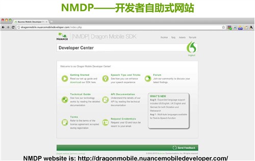 Gary:參加Nuance移動(dòng)開發(fā)項(xiàng)目的開發(fā)商可以在我們的專門網(wǎng)站下載SKD,可以用我們的API,在其移動(dòng)應(yīng)用集成可以有語(yǔ)音的功能,用我們的后臺(tái)的語(yǔ)音的技術(shù)。在90天內(nèi)進(jìn)行接入和測(cè)試是免費(fèi)的。這個(gè)項(xiàng)目推出3個(gè)月內(nèi),已經(jīng)有2500多家的開發(fā)商注冊(cè)參加這個(gè)項(xiàng)目,F(xiàn)在在美國(guó)的好幾家,比如說賣書的,用戶可以在他們的網(wǎng)站上面用語(yǔ)音去搜索書的名字,或者購(gòu)買的名字。
