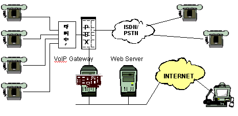PBX,它用于在LAN上完成呼入及呼出操作。這種方案對(duì)小型辦公室非常有用。它不僅可以實(shí)現(xiàn)傳統(tǒng)的硬件PBX的所有特性,而且還具有更多的優(yōu)勢(shì),因?yàn)檫@種PBX是通過軟件的方式來實(shí)現(xiàn)的。
