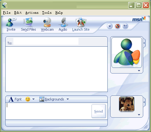 從聊天界面來(lái)看,兩者的類似更多。MSN Messenger 6.0在聊天界面比以前有了大幅改變,增加了聊天的兩者的頭像,并且可以方便的對(duì)自己的頭像進(jìn)行修改。同時(shí)還可以輕松的修改聊天界面的背景。同時(shí)可以通過(guò)上面的圖標(biāo)按鈕邀請(qǐng)他人參與,發(fā)送文件,視頻聊天等。QQ