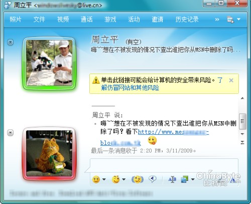 微軟MSN中國(guó)市場(chǎng)部總監(jiān)陳嘉榕表示:“微軟MSN始終致力于保護(hù)用戶的隱私和賬戶安全,為廣大用戶提供安全無(wú)憂的網(wǎng)絡(luò)服務(wù)。隨著軟件的不斷優(yōu)化,越來(lái)越多的安全產(chǎn)品被不斷的集成在Messenger平臺(tái)之中。但是在技術(shù)不斷進(jìn)步的同時(shí),我們相信用戶不斷提高的賬戶安全保護(hù)意識(shí)才是從根本上保證溝通安全的不二法門。對(duì)此,MSN將和用戶一同努力,打造純凈的互聯(lián)網(wǎng)人脈圈!
