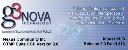 近日,Nexus CTMP for ICCP(The Intel Converged Communications Platform)3.0軟件在G3 NOVA Testing Lab通過(guò)了測(cè)試。