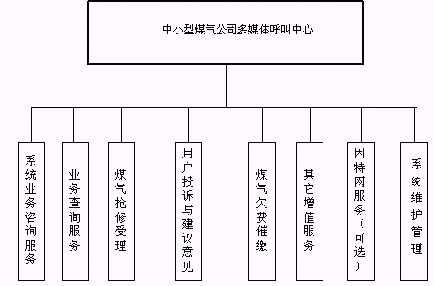 客戶(hù)利用電話、手機(jī)等撥打某一特服號(hào)碼(如9xxxx)進(jìn)入中小型煤氣公司多媒體呼叫中心系統(tǒng),本系統(tǒng)依托煤氣公司各類(lèi)業(yè)務(wù)技術(shù)支持系統(tǒng)和網(wǎng)絡(luò)系統(tǒng),通過(guò)人工受理或自動(dòng)語(yǔ)音服務(wù)等方式全天24小時(shí)不間斷地為客戶(hù)提供各種服務(wù)。