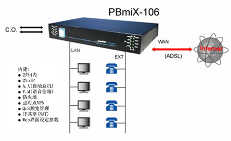在21世紀(jì)的今日,隨著網(wǎng)絡(luò)應(yīng)用的普及,無論是個(gè)人或企業(yè)對(duì)于交換機(jī)的觀念若仍拘泥于傳統(tǒng)的思維,將是落伍的。免費(fèi)網(wǎng)絡(luò)電話、分散式系統(tǒng),將是傳統(tǒng)交換機(jī) 在增加語音信箱/自動(dòng)總機(jī)功能之后,系統(tǒng)機(jī)制的重大變革。本公司推出的PBmaX/PBmiX系列IP-PBX,不但將上述所有功能整合于一體,進(jìn)一步可內(nèi)建公司VPN、Web服務(wù)器、GateKeeper等功能,呈現(xiàn)出數(shù)字交換機(jī)的全新風(fēng)貌,并將新的電話使用觀念帶進(jìn)企業(yè)、SOHO辦公室與家庭內(nèi)。