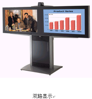 為在視頻會議中提供更高效的應用,視頻會議產品制造商不約而同地提出了"雙流"的概念。其中以POLYCOM的PEOPLE+CONTENT(人物+內容)和TANDBERG的Duo Video(雙路視頻傳送)為代表。