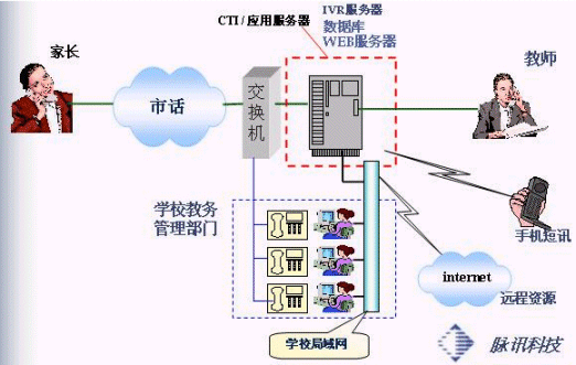上海脈訊計(jì)算機(jī)科技有限公司,在成熟的IVR平臺上,成功開發(fā)出統(tǒng)一消息理念的家校信息聯(lián)絡(luò)中心。