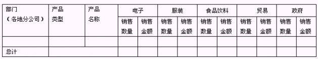 作為分公司銷售經(jīng)理,需要查看分公司每個(gè)銷售員的銷量統(tǒng)計(jì),便于向銷售總監(jiān)做好匯報(bào),需要同時(shí)知道不同產(chǎn)品類型的銷量。可以通過分組報(bào)表來實(shí)現(xiàn),如下圖: