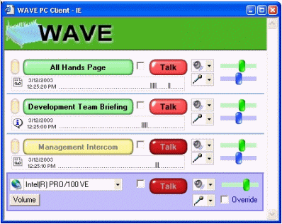 在當(dāng)今世界,各行各業(yè)的人們使用傳統(tǒng)電話會(huì)議的次數(shù)越來越多,特別是商務(wù)人士。與此同時(shí),大家對(duì)如何能降低電話會(huì)議的成本也有了更高的要求。WAVE就是這樣的一種軟件,它提供了基于IP的電話會(huì)議功能,因而可以大幅度地降低費(fèi)用。WAVE直接運(yùn)行在公司已有的網(wǎng)絡(luò)平臺(tái)上,不需要額外的硬件投資。
