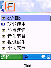 在確認你的手機可以支持富年科技的專用移動流媒體播放軟件后,你就可以到掌景無限的網(wǎng)站上下載對應(yīng)的播放軟件。這款播放軟件的名稱是FondoPlayer,其版本號和界面設(shè)計因所支持的手機品牌和型號的不同而略有區(qū)別,但是功能則大同小異。下面我們就以諾基亞的6600為例演示一下GPRS手機看電視的具體方法吧。