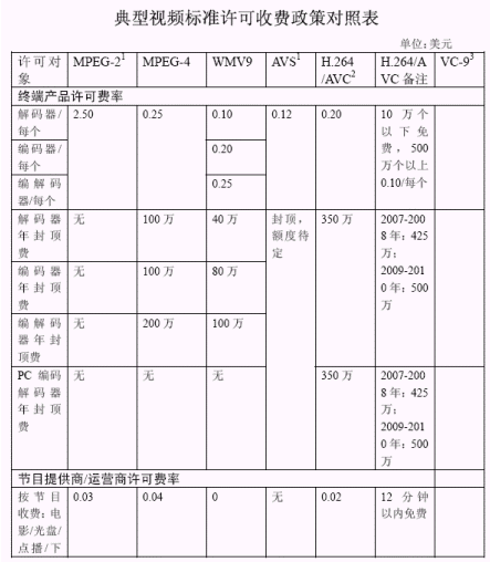 3GPP移動(dòng)視頻編解碼專(zhuān)利許可狀況