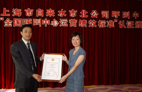 2004年9月16日,上海自來(lái)水市北有限公司正式通過(guò)《全國(guó)呼叫中心運(yùn)營(yíng)績(jī)效標(biāo)準(zhǔn)》(CCCS-PQ)認(rèn)證(四星級(jí)客戶服務(wù)中心) ,成為中國(guó)公用事業(yè)第一家,也是上海地區(qū)首家通過(guò)此認(rèn)證的呼叫中心。