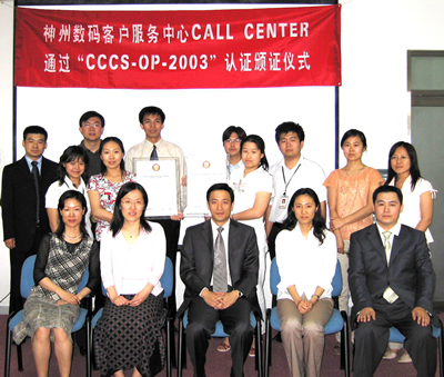 2005年6月2日,神州數(shù)碼呼叫中心通過了《全國呼叫中心運營績效標準》(CCCS-OP-2003)認證,并獲得由中國信息化推進聯(lián)盟客戶關系管理專業(yè)委員會頒發(fā)的認證證書(四星級客戶服務中心),成為國內(nèi)IT行業(yè)首家通過此認證的呼叫中心。