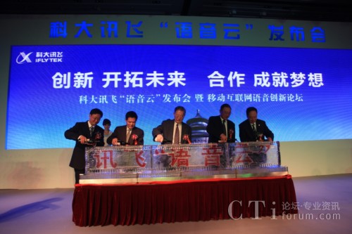 CTI論壇(ctiforum)10月29日消息(記者 潘婷婷): 2010年10月28日,“科大訊飛‘語音云’發(fā)布會暨移動互聯(lián)網(wǎng)語音創(chuàng)新論壇”在北京香格里拉飯店隆重舉行?拼笥嶏w作為中國語音產(chǎn)業(yè)領導者,在業(yè)界率先推出“訊飛語音云”,對于促進國家新近確定的七大戰(zhàn)略新興產(chǎn)業(yè)之一的“新一代信息技術(shù)”發(fā)展具有重大意義,將推動移動互聯(lián)網(wǎng)邁入語音時代,創(chuàng)新無限豐富的應用、創(chuàng)造廣闊的市場藍海。因此,此次發(fā)布會得到了各界的高度關注,各相關政府部門領導,聯(lián)想、騰訊、愛國者、優(yōu)視科技、播思通訊等各行業(yè)及移動互聯(lián)網(wǎng)領軍企業(yè)的代表,媒體界朋友,匯聚一堂、共襄盛舉,并就移動互聯(lián)網(wǎng)與語音產(chǎn)業(yè)的相互融合、創(chuàng)新發(fā)展、合力共贏進行了深入熱烈的探討。