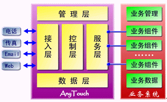 AnyTouch不僅僅是一個面向應(yīng)用開發(fā)商、系統(tǒng)集成商的CTI中間件產(chǎn)品,而且提供支持最終用戶自我維護(hù)、開發(fā)、編輯的業(yè)務(wù)接口與開發(fā)工具包;贏nyTouch,可以根據(jù)不同的行業(yè)需求開發(fā)出不同的業(yè)務(wù)應(yīng)用系統(tǒng),從而構(gòu)筑屬于自己的呼叫中心、企業(yè)增值服務(wù)、通訊服務(wù)、信息服務(wù)及CRM系統(tǒng)。