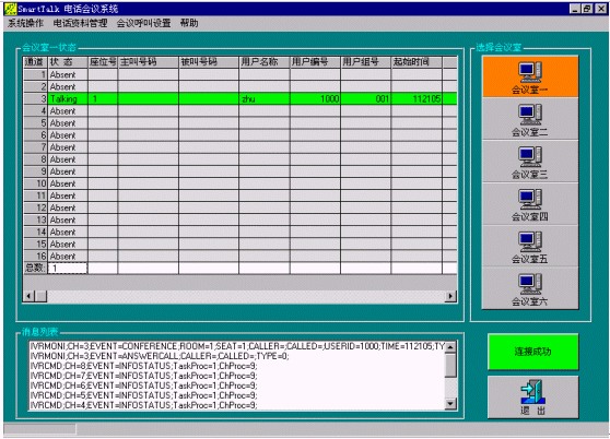 為了突破傳統(tǒng)電話會議系統(tǒng)的功能局限性,降低采用可視電話會議系統(tǒng)的高昻成本,本公司采用先進的CTI技術(shù)和設(shè)備,推出了SmarTalk Conference電話會議系統(tǒng),具有超強的會議能力(同時可建立多個會議,每個會議最多同時可以設(shè)60個全功能會議座席,會議語音效果清晰流暢),并且利用計算機控制技術(shù)使操作變得簡捷、方便,得到用戶一致的好評。同時用戶可以使用普通電話終端(包括固定電話和移動電話)進入會議,使用本系統(tǒng)的企業(yè)用戶不需要專用的中心會議室,參加會議的人員可以分布在任一地點,極大地方便了會議的召開。