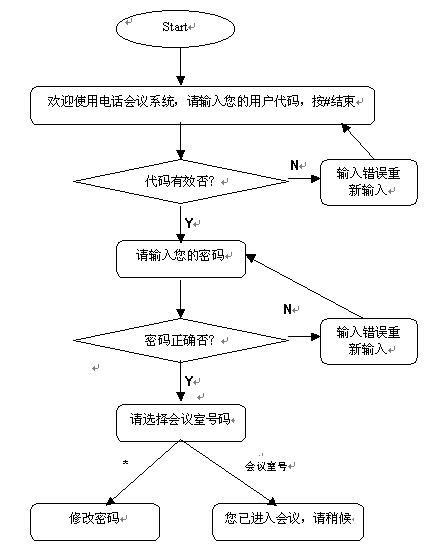 2、預(yù)定電話和設(shè)置其他會議參加者(與會者)的密碼:會議召集者需召開電話會議時,召集者撥打一個特定的電話號碼,并按系統(tǒng)提示輸入會議日期。時間、人數(shù) 等相關(guān)信息。當然,召集者可以隨時通過電話設(shè)置與會者密碼,如果您所召開的會議沒有保密要求,也可以在預(yù)約時選擇免輸入與會者密碼方式。