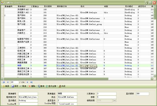 在CRM系統(tǒng)中還有一些系統(tǒng)的擴展功能,包括動態(tài)菜單,自定義用戶資料、工單資料、產(chǎn)品信息,網(wǎng)頁嵌入,EXE嵌入,這些擴展功能方便用戶根據(jù)自己的需要個性化的設(shè)定CRM系統(tǒng),例如我們可以通過菜單管理來定制需要顯示的菜單內(nèi)容,菜單名稱以及可以根據(jù)不同的角色設(shè)置某個菜單項是否可見,如圖26所示