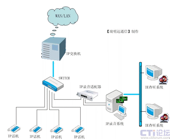 【瑞明達通信】是國內(nèi)較早從事專業(yè)計算機電話語音系統(tǒng)(CTI)產(chǎn)品的開發(fā)商, 在客戶交互式解決方案行業(yè)中有十多年的從業(yè)經(jīng)驗,具備雄厚的語音產(chǎn)品開發(fā)能力。最近幾年,基于 IP 的下一代通信,正在以前所未有的速度改變著全世界的通信架構(gòu)和商業(yè)格局。【瑞明達通信】作為錄音技術(shù)的領(lǐng)先廠商,就已經(jīng)具有前瞻性的潛心致力于基于IP通訊線路的多媒體記錄解決方案的研發(fā),RMD_VoIPlog錄音系統(tǒng)是由【瑞明達通信】自行開發(fā)研制的新一代IP錄音系統(tǒng)。該系統(tǒng)在記錄VoIP語音的同時,所需的語音資源通過軟件方式或硬件平臺直接由網(wǎng)絡(luò)中的RTP等數(shù)據(jù)流獲取,無須和座席分機或中繼線進行并接,因此是一種軟件/硬件分別實現(xiàn)的錄音系統(tǒng),是真正的基于IP 的錄音解決方案。RMD_VoIPlog錄音系統(tǒng),是以數(shù)字記錄、數(shù)據(jù)庫查詢、光盤存儲等先進技術(shù)為手段,為通話語音的錄制、管理提供了一種先進、科學(xué)而又行之有效的方法。二、RMD_VoIPlog錄音系統(tǒng)運行環(huán)境