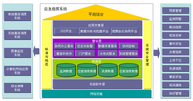 應(yīng)急基礎(chǔ)平臺(tái)是基于先進(jìn)信息技術(shù)、網(wǎng)絡(luò)技術(shù)、GIS技術(shù)、通信技術(shù)和應(yīng)急信息資源基礎(chǔ)上的,充分利用現(xiàn)有資源,依托政府系統(tǒng)電子政務(wù)建設(shè),建立統(tǒng)一應(yīng)急指揮網(wǎng)絡(luò)平臺(tái),實(shí)現(xiàn)緊急事件報(bào)警的統(tǒng)一接入與交換。