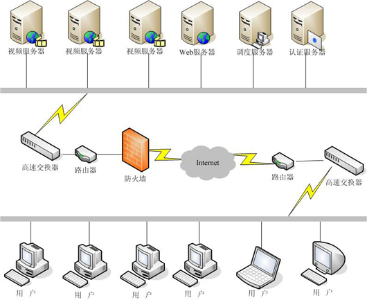 考慮到在線點(diǎn)播的用戶為1000并發(fā),所以使用一臺服務(wù)器就可以滿足需求了,客戶可以通過認(rèn)證后,經(jīng)客戶經(jīng)過調(diào)度服務(wù)器將請求反饋給視頻服務(wù)器,完成視頻點(diǎn)播流程,具體架構(gòu)如圖。