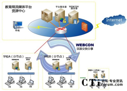 圖:VIEWGOOD WEBCDN流媒體多節(jié)點(diǎn)綜合管理應(yīng)用平臺(tái)教育解決方案網(wǎng)絡(luò)架構(gòu)圖