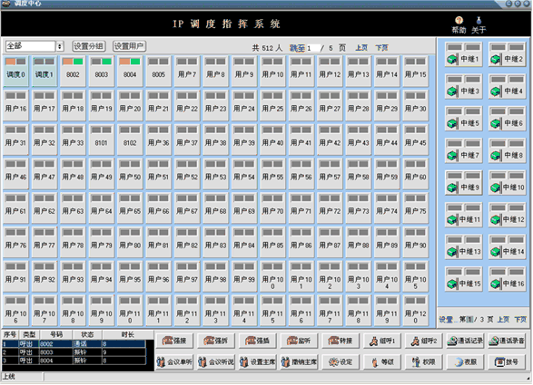 調(diào)度臺可顯示用戶、中繼的工作狀態(tài),所有狀態(tài)一目了然,調(diào)度員可方便的運(yùn)用強(qiáng)插、強(qiáng)拆等功能
